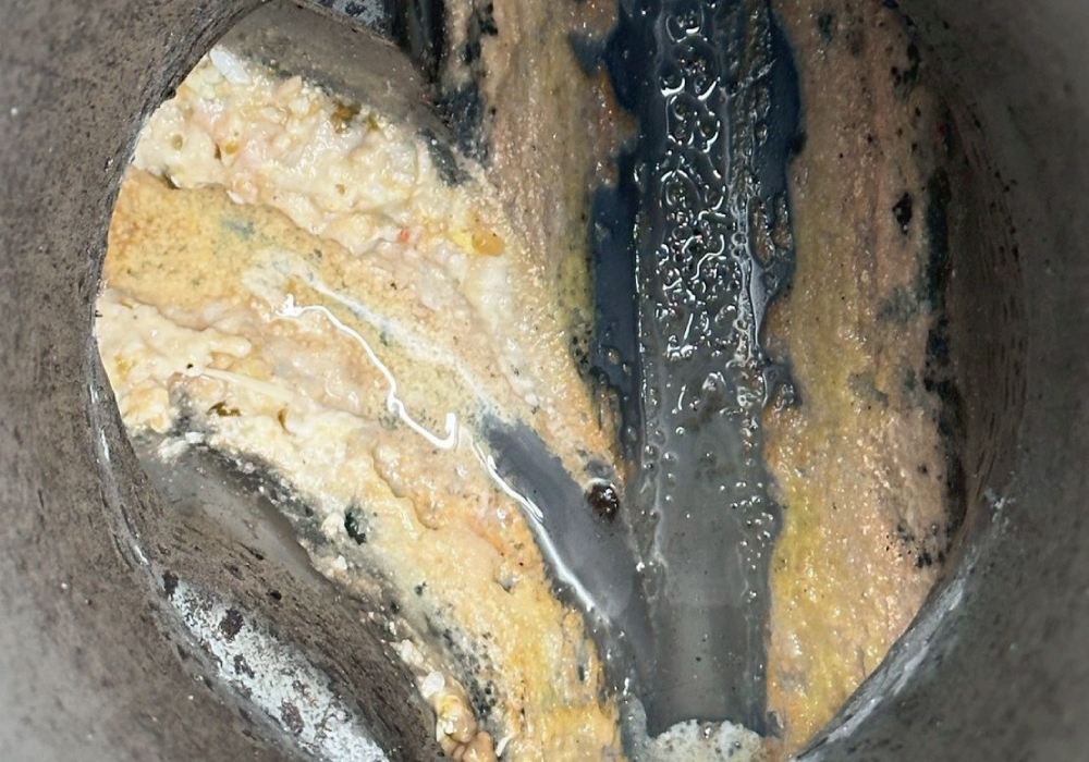 排水桝から除いてみると管内に油汚れが付着しそれをきっかけに汚れが蓄積していきます。